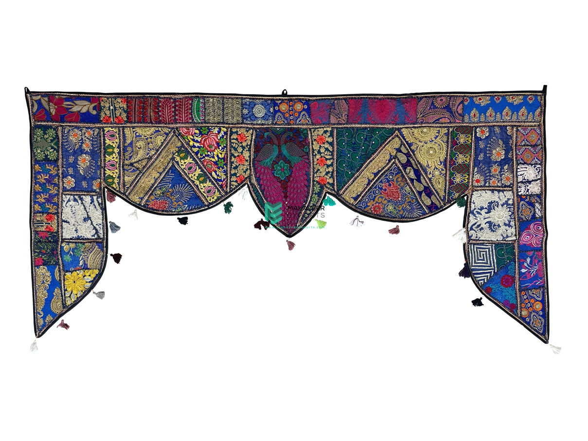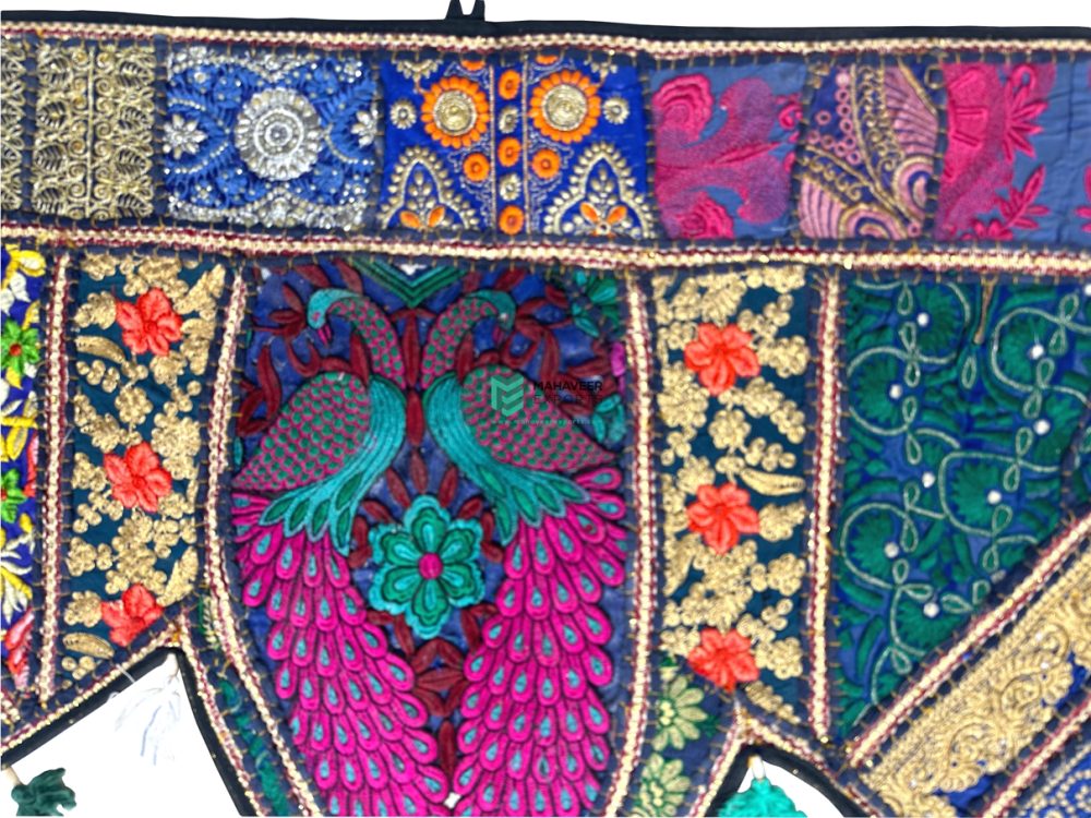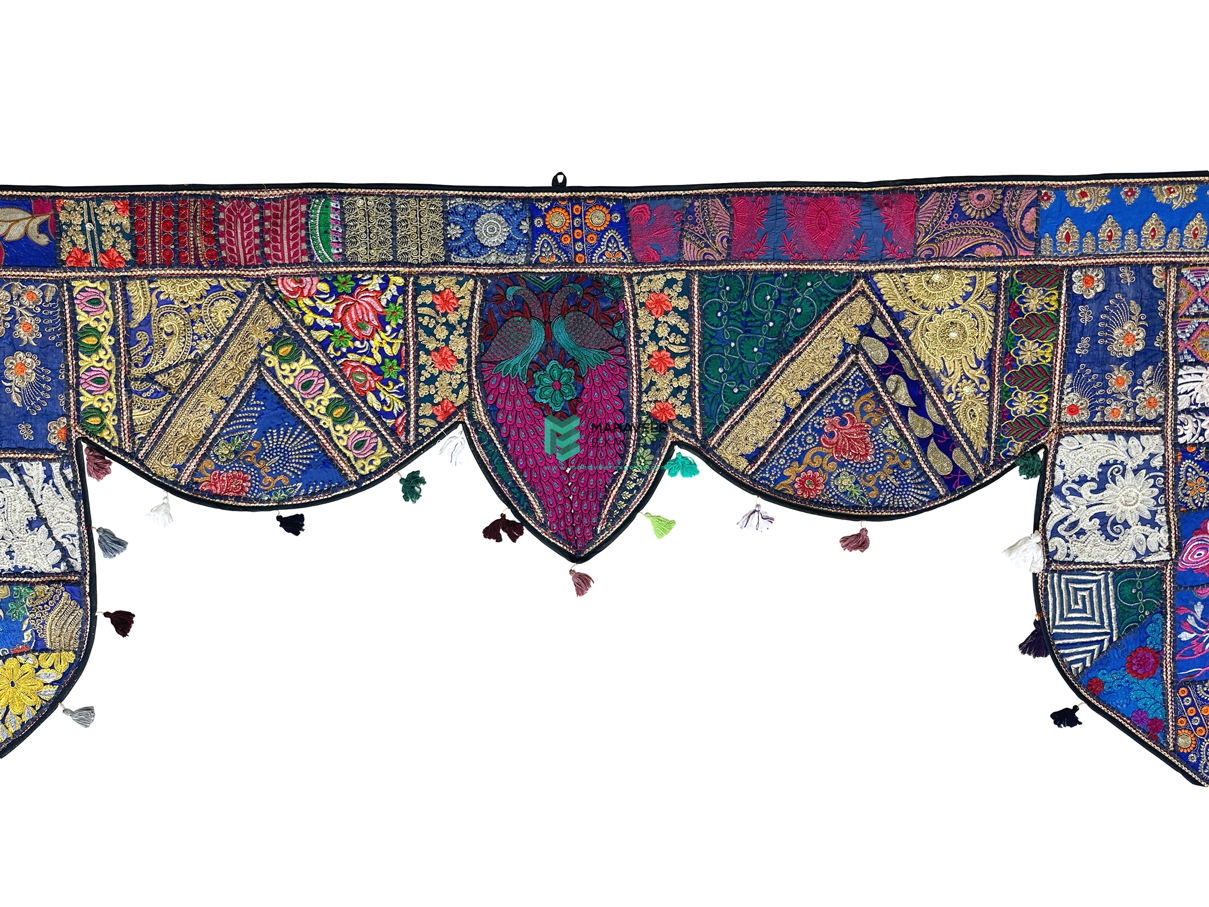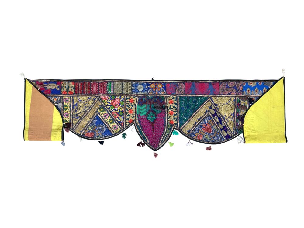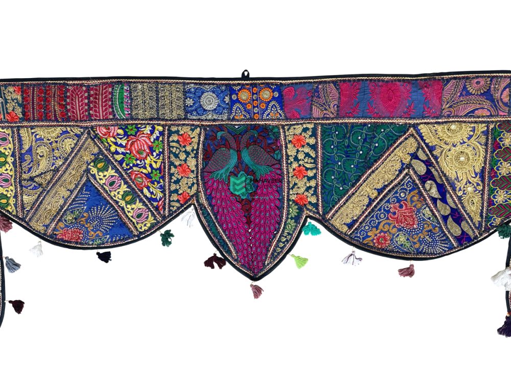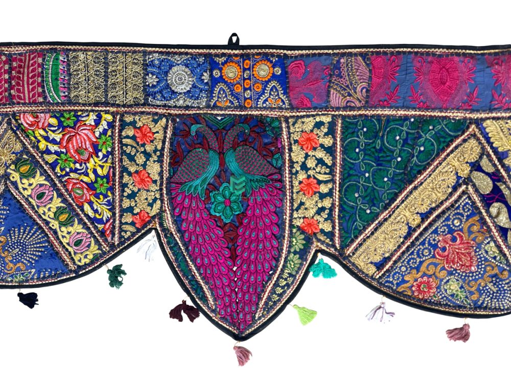 Indian Handmade Embroidered Door Hanging/Cotton Toran features intricate multi color embroidery work, meticulously crafted using traditional techniques. Patches covered with intricate thread work are carefully cut and sown together to create stunning collages of color and texture. This stunning ornamental piece can be hung over a bohemian window, wall or door to add bright, invigorating colors to your home décor. Almost for any Home Decor Purpose Like – For Wall Decor, Decorative Accessories, Outdoor, Living Room Accessories, Bed Room, For Gifts. Decorate your windows, hallways, festival or craft show stalls or just anywhere in your home as gypsy, hippy, bohemian home decor. 100% handmade and one-of-a-kind, this piece includes hooks for easy hanging. Every Door Hanging or Cotton Toran has a different patch then the other.