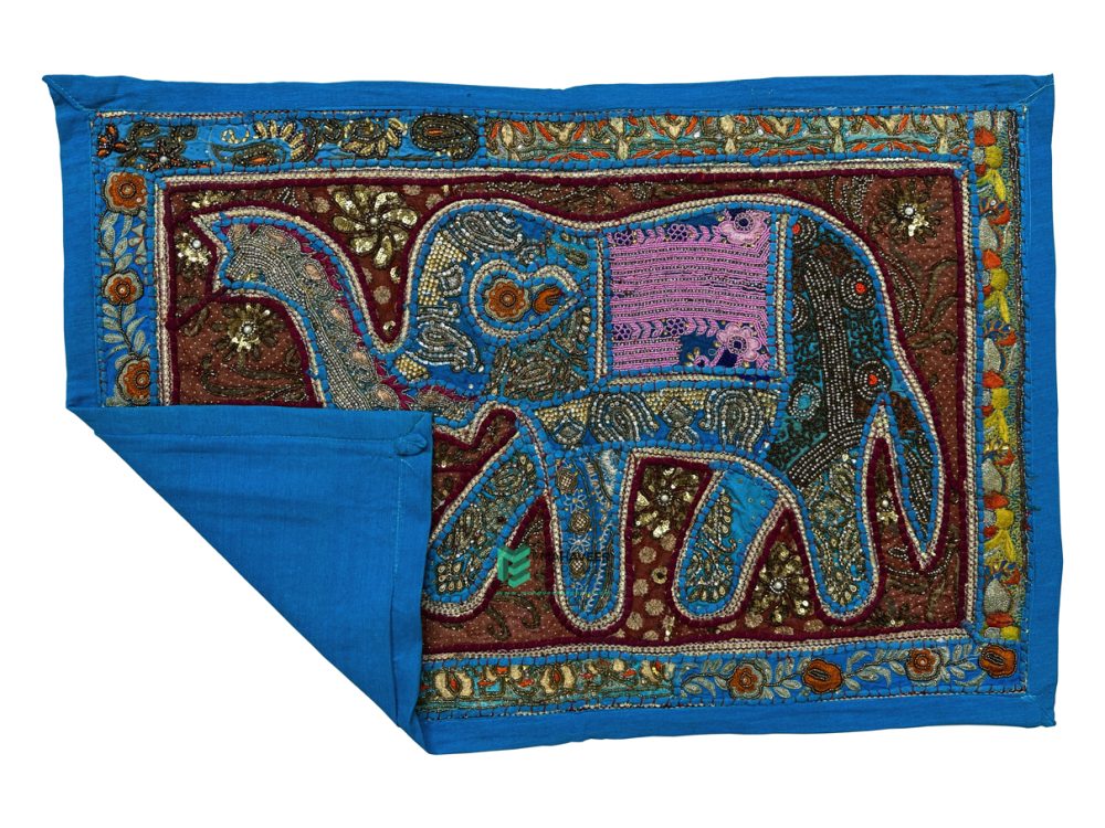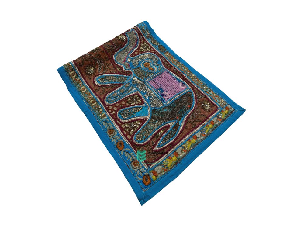 Indian Handmade Embroidery Elephant Design Cotton Wall Hanging / Tapestry Light Blue – ME240075014-5