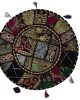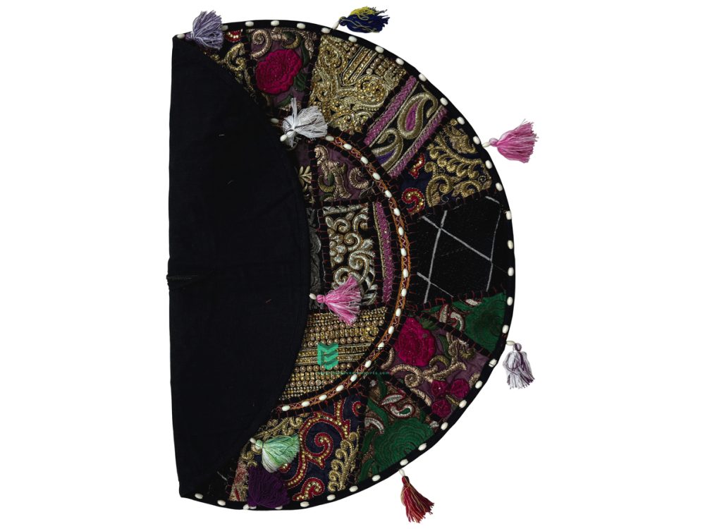 Indian Patchwork Embroidery Round Gaddi Cushion Cover Black – ME240045009-4